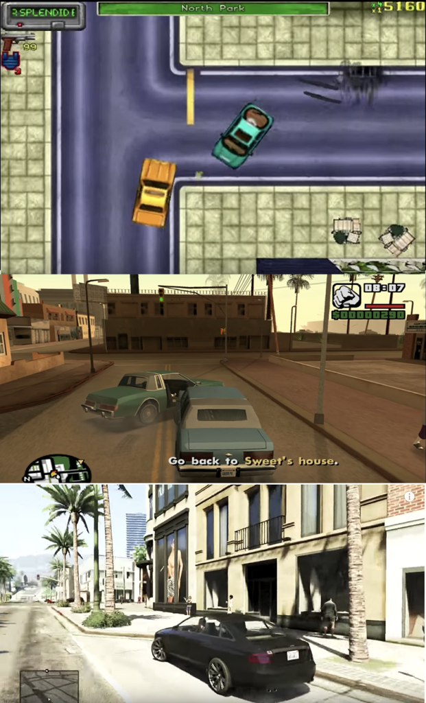 And yes, At first glance, there can be no denying that there was a significant visual upgrade between the first and third Xbox consoles. Though notable progress was made across the three Grand Theft Autos released for the Playstation 2 and original Xbox – first simply rendering an original Grand Theft Auto city in three dimensions before adding elements like detailed interiors and aiming mechanics – Grand Theft Autos 4 and 5 took these to another level. Not only did the artwork style change from overtly cartoony to a much more resource-intensive realism, but the game worlds feature elements like functioning bridge toll systems and useable bowling alleys.
