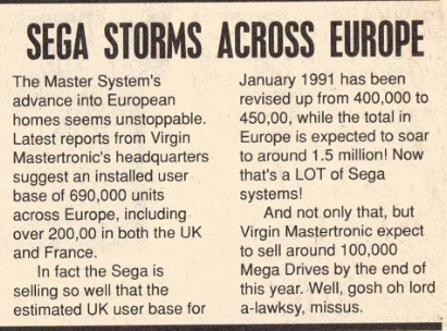 Unfortunately this document doesn’t provide details we could use to corroborate it, but it’s interesting that the figures for the latter years tie in with the official Chart-Track data. Alongside that, the estimate of 200,000 sales for 1990 is also in the same ball park as the official figures Virgin Mastertronic released for that year, quoted here in Sega Power: