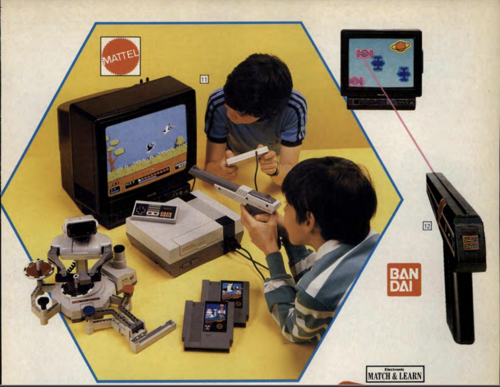 Alongside this, the second thing that stands out is its’ placement. Despite the buoyant computer game market at the time, the NES was the only dedicated games machine to appear in the Argos catalogue that year. Rather than Sega and Atari, it appeared next to a weird Bandai light gun novelty, a bunch of single game LCD devices and some general electronic novelty toys.