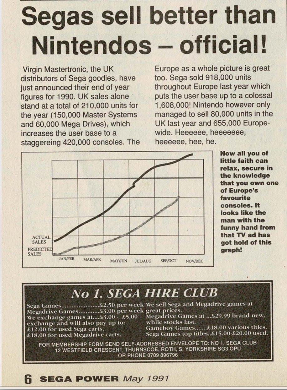 In fact, there’s more! the figures from the EA document also tally reasonably well with the figures the Sega Power team (publishing then as S: The Sega Magazine) reported for 1989, and 1991.