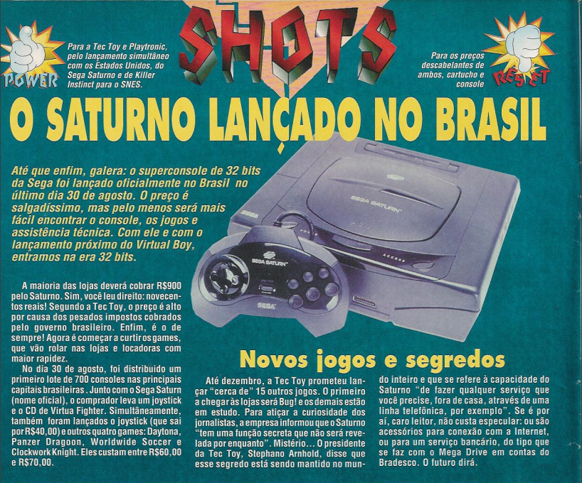 Europe is not just the UK of course, and back in the ’90s the non-existence of the Euro made it an even bigger headache for console manufacturers. The Saturn had prices in German Deutsche Marks, French Francs, Spanish Pesetas and Italian Lira. No matter where you look, however, the story is broadly the same as the UK and the US: Debuting at 79,900 Pts in Spain in July 1995, the console was priced was slashed to 39,900 less than a year later. In Germany the launch price was 699 -DM before being launch to 499 by April 1996. In France, the console sold initially for 3000F before being reduced to 1,490F after E3 1996. In Europe Sega also mimicked the aggressive bundling found elsewhere: In early 1997 Sega were selling a bundle that contained an extra controller, World Wide Soccer and Sega Rally for 1590F/449,95DM.